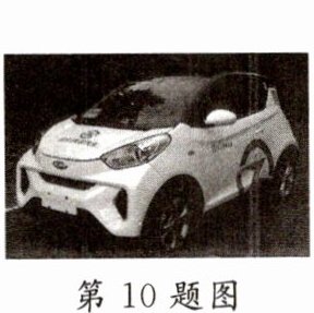 10. (2024·本溪期中)随着共享单车在全国各大城市迅速铺开,“共享汽车”也随之悄然进入了人们的视野.如图所示为某品牌“共享汽车”,其总质量为$1.2×10^{3}kg$,g取10N/kg.若用100N的水平推力推小车时,小车静止不动,则小车此时受到的阻力为