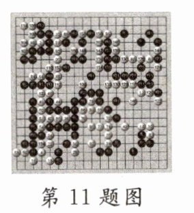 11. 围棋起源于中国,中国古代称为“弈”,距今已有4000多年的历史,如图所示,棋子被吸附在竖置的磁性棋盘上保持静止,此时棋子受到的重力和棋盘对棋子的__