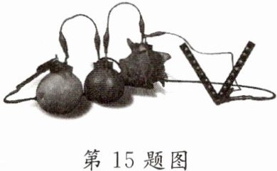 15. 如图所示,小明将铜片、铁片插入水果中,制成水果电池. 水果电池工作过程中将