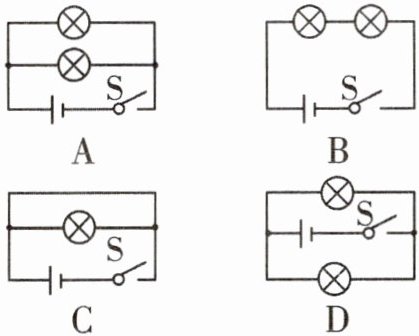 【解析】A. 开关闭合后,电流分别流入两个灯泡,不会发生短路,故A不符合题意;B. 开关闭合后,电流依次流入两个灯泡,不会发生短路,故B不符合题意;C. 开关闭合后,电源两端被导线直接相连,形成电源短路,故C符合题意;D. 闭合开关后,电流分别流入两个灯泡,不会发生短路,故D不符合题意。