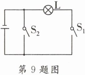 【解析】A. $S_{1}$断开,$S_{2}$闭合时,电源的两端被导线连接,是短路,故A错误;B. $S_{1}$闭合,$S_{2}$断开时,小灯泡接入电路中,能正常发光,故B正确;C. $S_{1}$和$S_{2}$都闭合时,电源被短路,电源会损坏,没有电流通过小灯泡,所以小灯泡会完好无损,故C错误;D. $S_{1}$和$S_{2}$都断开,电路为断路状态,电源中没有电流通过,故D错误。