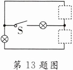 13. 请在如图所示的两个虚线框内填“电源”和“开关”的符号,并满足当开关都闭合时两灯组成并联电路.