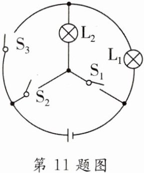 11. 如图所示,要使灯$L_{1}和L_{2}$串联,应闭合的开关是