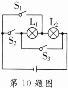10. 如图所示,要使小灯泡$L_{1}$、$L_{2}$串联,必须闭合开关