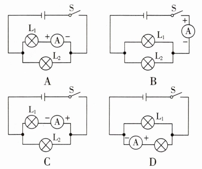 例题1 (2024·攀枝花模拟)如图所示四个电路图中,能正确测量通过$L_1$电流的电路是 (
