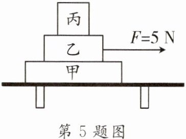 5.(2024·辽宁模拟)如图所示,水平桌面上有甲、乙、丙三个物块叠放在一起,现用5N的力F沿水平方向拉物块乙,甲、乙、丙都保持静止.下列说法中错误的是(