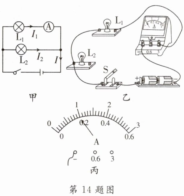 14. (2024·贺州模拟)如图所示,在探究“并联电路的电流特点”的实验中,小明设计了如图甲所示的电路进行实验: