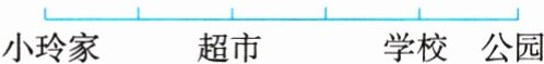 从小玲家到学校的距离是 4000 米,到公园的距离是 5000 米,公园和超市相距 3000 米。学校和超市之间相距多少千米?