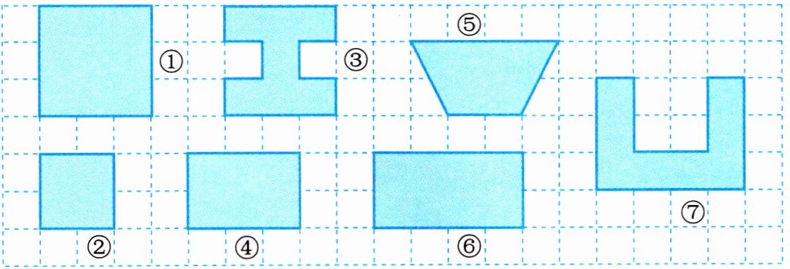 1. 方格纸中每块小方格表示1平方厘米,数出各图形的面积。