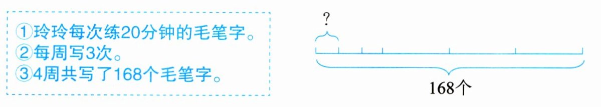 玲玲每次写多少个毛笔字168÷4=42(个) 42÷3=14(个)