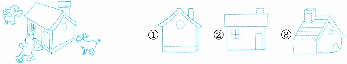 小羊在房子的右面,所以它看到的是房子的右侧面,即图①。