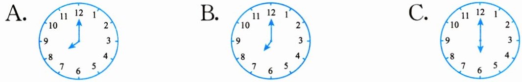 (4)学校每天早上 8:00 上课,下面表示上课前 1 小时的是( )。