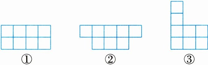 (5)洋洋用 8 个完全一样的正方形分别拼出了不同的图形,下面说法正确的是( )。