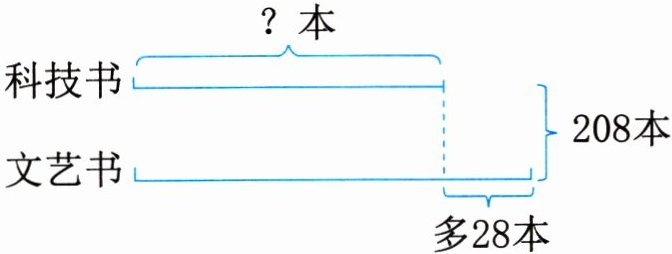 科技书和文艺书一共有208本,文艺书比科技书多28本,科技书和文艺书各有多少本?科技书:90本;文艺书:118本