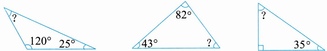 三、求下面三角形未知角的度数。