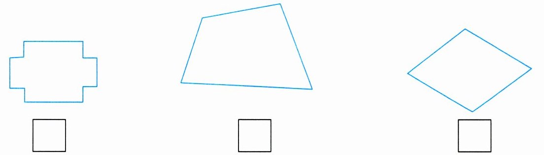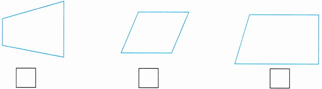 2. 下面的图形是梯形的,在它下方的 $ □ $ 中打“√”。