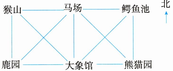 (2)鹿园在马场的( )面,大象馆的( )面是鳄鱼池。