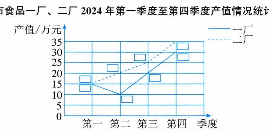 5. ( )季度两个食品厂的产值差距最大,相差( )万元。