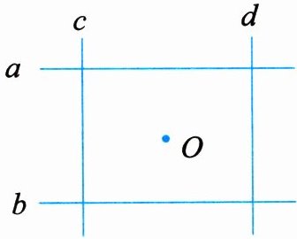 10. 两组平行线围成一个长方形,O点在长方形的正中间(如右图所示)。如果O点到直线a距离是5厘米,到直线c距离是6厘米,这个长方形的周长是( )厘米,面积是( )平方厘米。