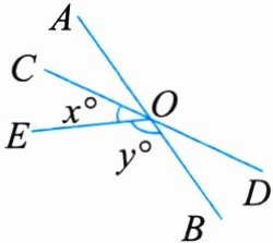 7. 如图所示,直线 $ AB $ 与 $ CD $ 相交于点 $ O $,且 $ ∠AOD = 150^{\circ} $. $ ∠EOB $ 比 $ ∠COE $ 大 $ 90^{\circ} $,设 $ ∠COE = x^{\circ} $,$ ∠EOB = y^{\circ} $,则可得到的方程组为(