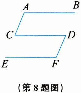 8. 如图所示,若 $ AB // CD $,$ CD // EF $,则 $ AB $ 与 $ EF $ 的位置关系是