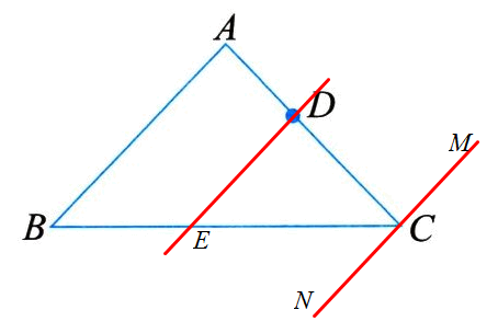 (1)过 $ AC $ 上一点 $ D $ 作 $ AB $ 的平行线,交 $ BC $ 于点 $ E $;
