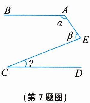 7. 如图所示,若$AB// CD$,则$\alpha$,$\beta$,$\gamma$之间的关系为(