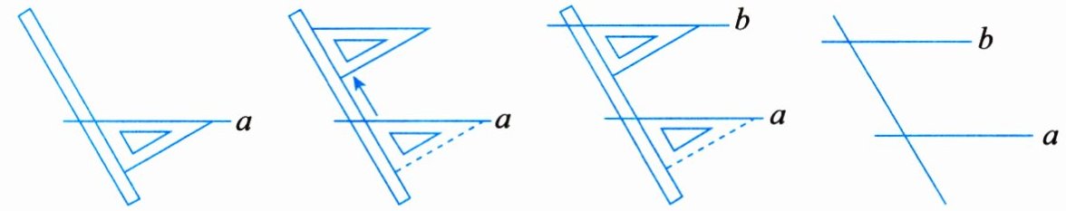 4. 如图所示,画平行线的操作中,最直接依据的基本事实是(