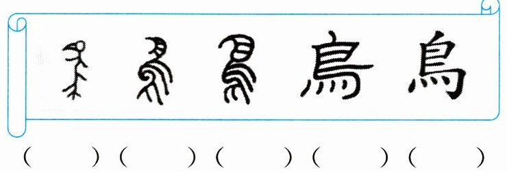 二、选择“鸟”字演变过程的对应字体,把序号写在括号里。