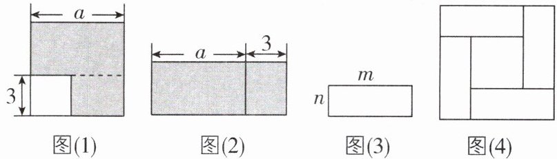 (2)小明用四个如图(3)所示的小长方形$(m > n)$,拼成如图(4)所示的大正方形.