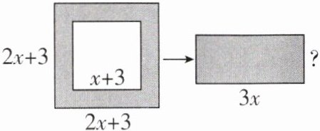 5 [2024河北石家庄长安区模拟,中]如图,在边长为$2x+3的正方形纸片中剪下一个边长为x+3$的正方形,剩余部分(即阴影部分)可剪拼成一个长方形,若拼成的长方形一边长为$3x$,求另一边的长.