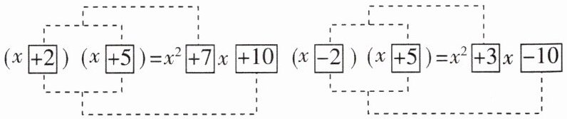 4[2025河南新乡期末]观察如图所示的两个多项式相乘的运算过程,根据你发现的规律分析,若$(x + a)(x + b) = x^{2} - 9x + 14$,则$a$,$b$的值可能分别是( )