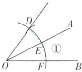 5 [2025广东广州期中]如图,已知$\angle AOB$,以点O为圆心,任意长为半径画弧①,分别交OA,OB于点E,F,再以点E为圆心,以EF长为半径画弧,交弧①于另一点D,画射线OD。若$\angle AOB = 28^{\circ}$,则$\angle BOD$的度数为( )