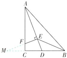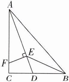 5 [2024 山东菏泽校级质检,中]如图,在 Rt△ABC 中,∠ACB = 90°,∠BAC 的平分线 AD 交 BC 于 D,交∠ABC 的平分线于 E,过点 E 作 EF⊥AE,交 AC 于点 F,试说明:AF + BD = AB。