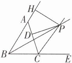 8 如图,在△ABC中,∠ABC的平分线与外角∠ACE的平分线交于点P,PD⊥AC于点D,PH⊥BA于点H。