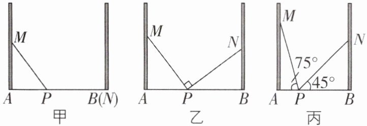 (3)当他在丙房间时,测得MA=3.3米,且∠MPA=75°,∠NPB=45°,求丙房间的宽AB.