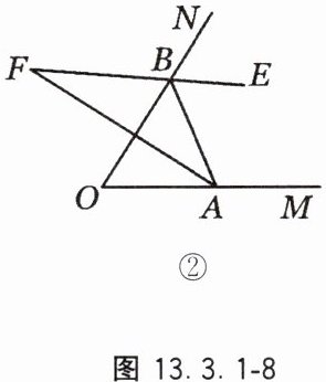 12. 如图 13.3.1 - 8,$A$,$B$ 分别是 $\angle MON$ 两边 $OM$,$ON$ 上的动点(均不与点 $O$ 重合)。