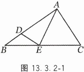 1. 如图 13.3.2 - 1,在△ABC 中,点 D,E 分别是边 AB,BC 上的点,连接 AE 和 DE,则下列角中是△BDE 的外角的是(