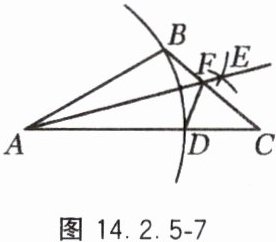 9. 如图 14.2.5 - 7,在 $\triangle ABC$ 中,以点 $A$ 为圆心,$AB$ 长为半径画弧交 $AC$ 于点 $D$,分别以点 $B$,$D$ 为圆心,大于 $\frac{1}{2}BD$ 的长为半径画弧,两弧交于点 $E$,作射线 $AE$,交 $BC$ 于点 $F$,连接 $DF$。