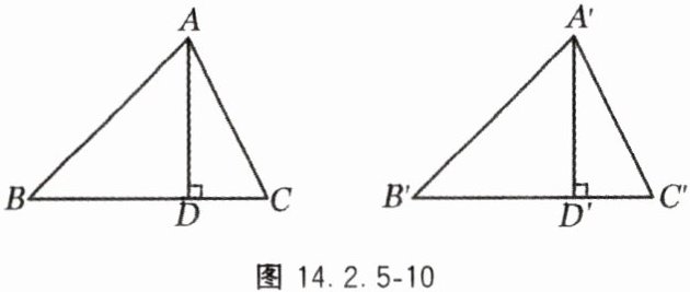 12. 如图 14.2.5 - 10,$\triangle ABC \cong \triangle A'B'C'$,线段 $AD$,$A'D'$ 分别是 $\triangle ABC$ 和 $\triangle A'B'C'$ 的高,求证:$AD = A'D'$。