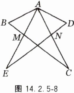 10. 如图 14.2.5 - 8,已知 $AB = AD$,$BC = DE$,且 $BA \perp AC$,$DA \perp AE$,求证:$AM = AN$。