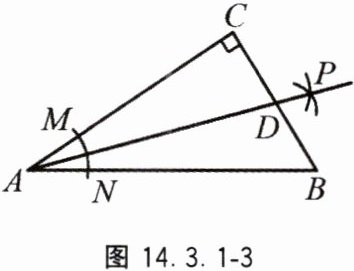 3. 如图 14.3.1 - 3,在 Rt△ABC 中,∠C = 90°,以顶点 A 为圆心,适当长为半径画弧,分别交 AC,AB 于点 M,N,再分别以点 M,N 为圆心,大于 $\frac{1}{2}MN$ 的长为半径画弧,两弧交于点 P,作射线 AP 交边 BC 于点 D. 若 CD = 3,AB = 10,则△ABD 的面积是 \underline{