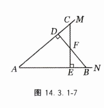 8. 如图 14.3.1 - 7,已知 BD⊥AM 于点 D,CE⊥AN 于点 E,BD,CE 交于点 F,CF = BF,求证:点 F 在∠A 的平分线上.
