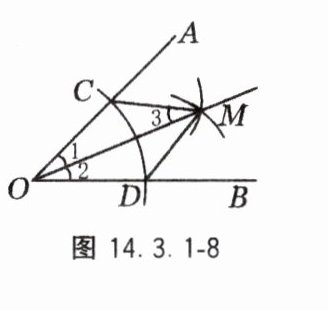 ③作射线 OM,连接 CM,DM,如图 14.3.1 - 8 所示.