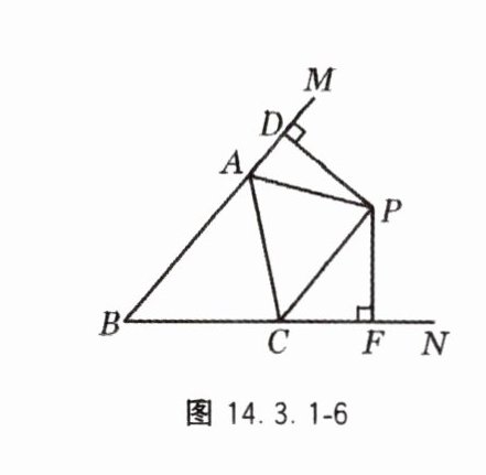 7. 如图 14.3.1 - 6,PA,PC 分别是△ABC 的外角∠MAC 和∠NCA 的平分线,它们交于点 P,PD⊥BM 于点 D,PF⊥BN 于点 F,求证:PD = PF.