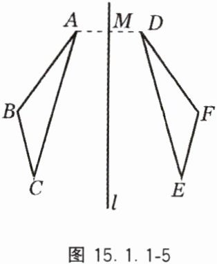 6. 如图 15.1.1 - 5,△ABC 与△DFE 关于直线 l 成轴对称.