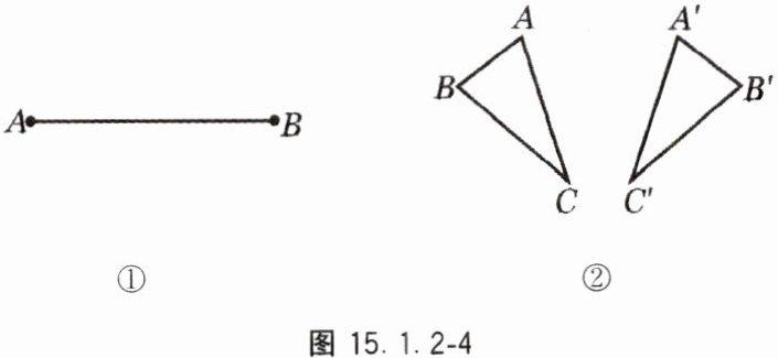 (2) 如图 15.1.2 - 4②,已知图中两个三角形关于直线 $ l $ 成轴对称,请画出对称轴 $ l $.