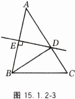 3. 如图 15.1.2 - 3,在 $ \triangle ABC $ 中,$ AC = 14 $,$ DE $ 是 $ AB $ 的垂直平分线,$ BE = 6 $,$ \triangle CBD $ 的周长为 24,求 $ BC $ 的长和 $ \triangle ABC $ 的周长.