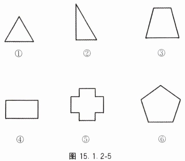 5. 如图 15.1.2 - 5,下列各图形是轴对称图形吗?如果是,请画出它们的一条对称轴.