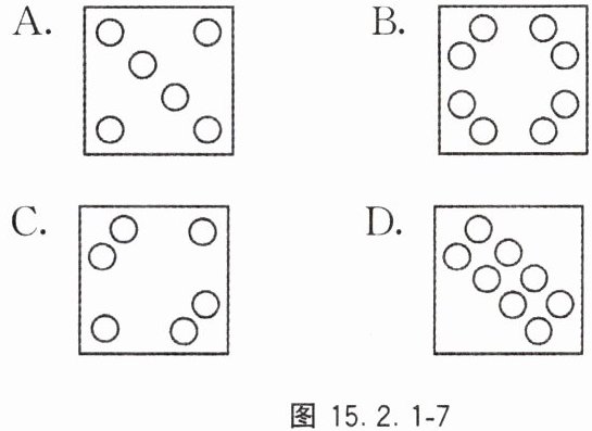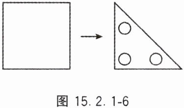 8. 如图 15.2.1 - 6,将一个正方形纸片沿对角线折叠一次,然后在得到的三角形的三个角上各挖去一个圆洞,最后将正方形纸片展开,得到的图案是图 15.2.1 - 7 中的(